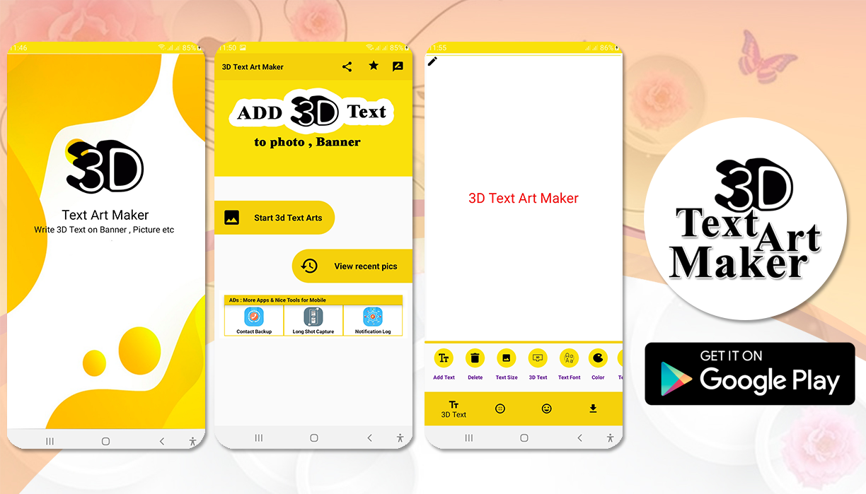 Sekarang sehari sangat penting untuk menambahkan gaya Teks 3d ke spanduk logo bisnis Anda, selebaran dan kartu nama, tanpa alat khusus itu sangat sulit untuk menambahkan teks gaya 3d ke foto Anda, tetapi kami membawa alat yang bagus yang disebut seni 3d pembuat - teks 3d ke aplikasi pic, aplikasi memungkinkan Anda menambahkan teks gaya teks 3d ke gambar atau membuat gambar atau spanduk Anda bergaya dengan menambahkan teks 3d. aplikasi ini memiliki begitu banyak opsi untuk membuat teks lebih gaya dan menarik. Anda dapat membuat kartu Ulang Tahun, kartu tahun baru, kartu ucapan dengan font teks dan gaya 3d yang bagus bersama dengan gaya teks yang berbeda seperti pengaturan warna teks blurness teks, bayangan teks dan banyak lagi pilihan.
