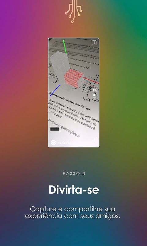 Aplicativo de realidade aumentada para ser utilizado junto a livros de engenharia. Ao reconhecer os marcadores nesses livros é possível interagir com modelos 3d e animações explicativas que auxiliarão seu aprendizado.