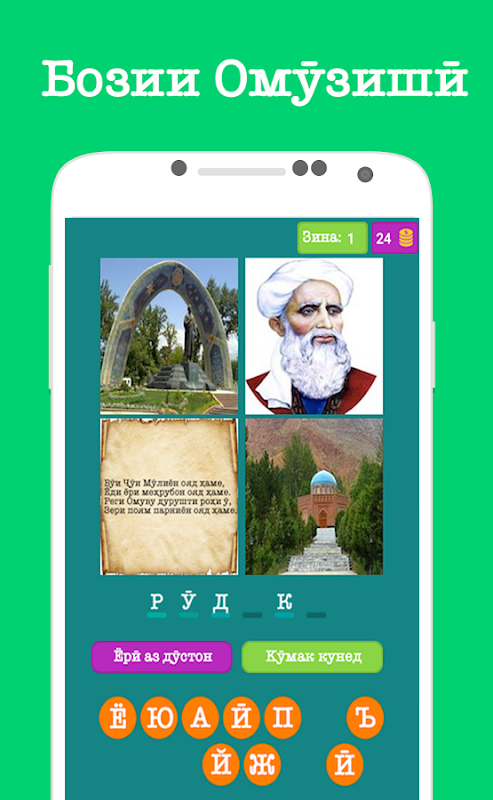 Дар ин бозии Шоирон, мо дар хар зина 4 акс (сурат) нишон медихем ба 1 шоири адабиёти классики форсу точик алокае дорад. Шумо бояд он Шоирро дарёфт кунед! Бо ин бози шумо на танхо вакти холии худро хуш мегузаред, балки метавонед дониши худро низ завкал дихед!