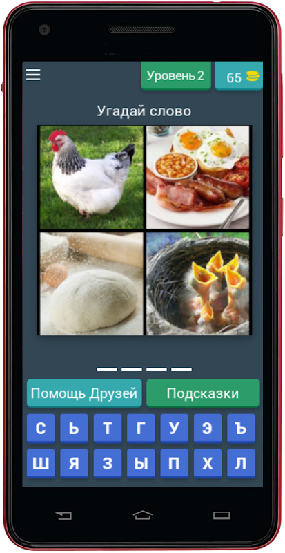 В каждом уровне Вы видите 4 фото (картинки). Вам надо угадать одно слово, которое объединяет их вместе. За ответ получаете больше монеток. Это очень увлекательно!