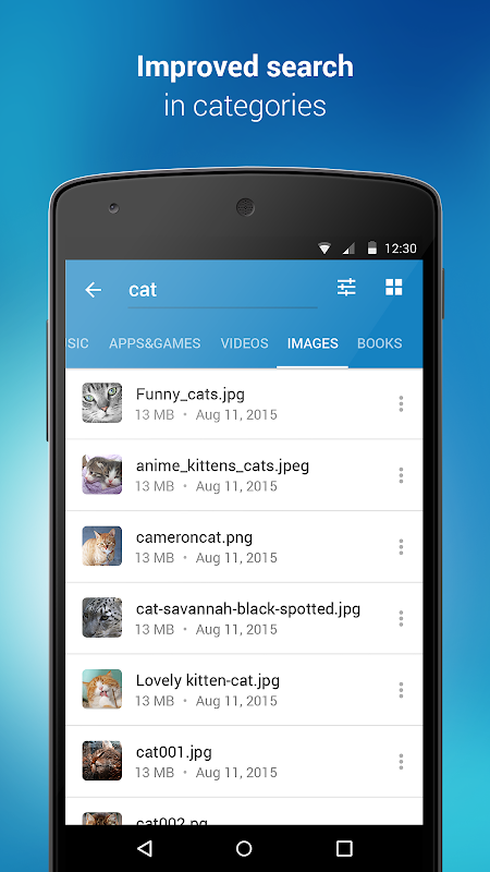 Opsi pencarian publik yang mudah memungkinkan Anda untuk mencari dan menemukan berkas yang Anda butuhkan dalam basis data berkas 4shared yang sangat besar. Di samping itu, mudah untuk menetapkan berbagai filter pencarian (waktu pengunggahan, ukuran, jenis berkas, dsb.) untuk mendapatkan hasil terbaik dan menambah berkas yang diperlukan ke akun Anda sendiri di 4shared.com.