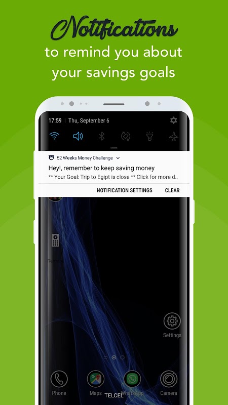 Mulai menabung uang dengan mudah, pantau kemajuan Anda, termasuk notifikasi