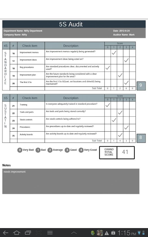 5s Audit app mari kita Anda melakukan audit setiap departemen dalam setiap industri. Kami telah menerapkan serangkaian pertanyaan pemeriksaan yang dapat dimasukkan ke dalam praktek dalam organisasi apapun.