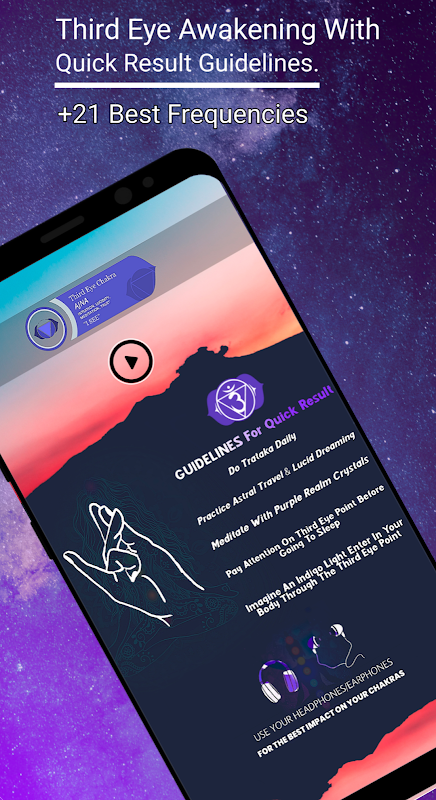 ✔️ Dengan bantuan "7 Aplikasi Penyembuhan Chakra: Musik untuk Relaksasi Otak (Gelombang Binaural)", buka mata ketiga dan cakra mahkota Anda.