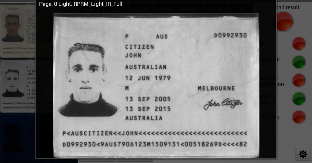 Demo aplikasi untuk digunakan dengan dokumen Ponsel pembaca Regula 7308