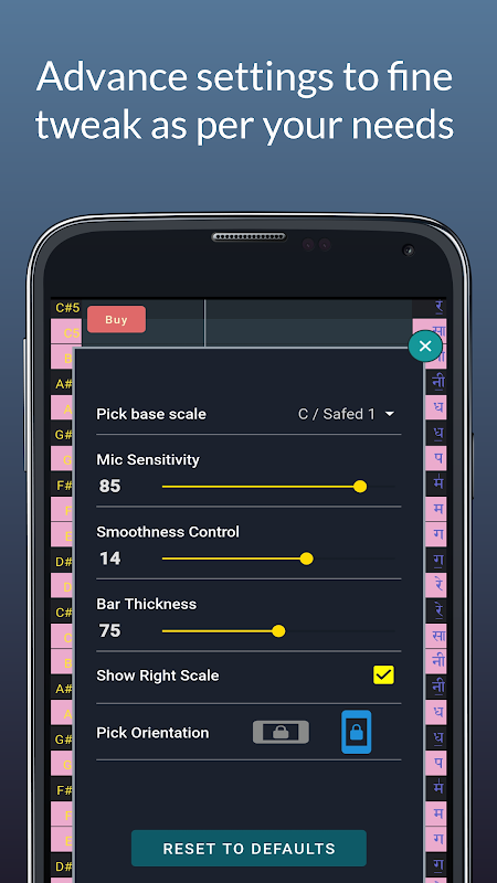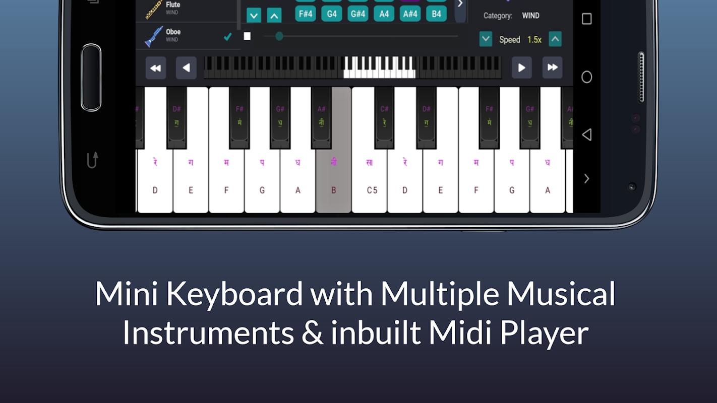 Gunakan untuk belajar tentang Raagas Klasik Hindustan & Carnatic (tangga nada) dan biasakan diri Anda dengan suara Instrumen yang berbeda