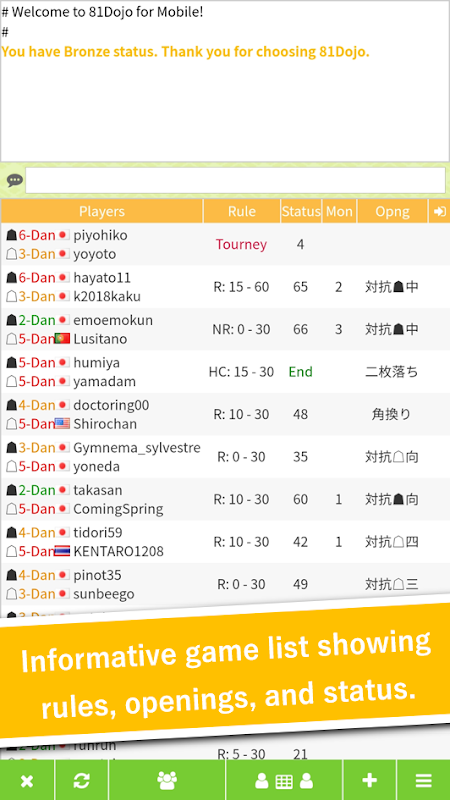 81Dojo memiliki ciri khas berupa fungsi-fungsinya yang unik dan canggih, seperti dukungan analisis pascapermainan yang interaktif, lingkungan bermain yang sangat nyata, termasuk suara byoyomi profesional, dan internasionalisasi. Sebagian besar fungsi tersebut disalin ke aplikasi ini. 81Dojo selalu bersama Anda, saat Anda membawanya dengan ponsel pintar ke mana pun Anda pergi. Mengapa tidak beristirahat sejenak dan menikmati beberapa permainan singkat di 81Dojo?