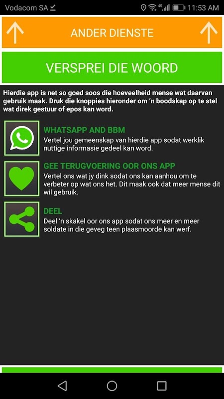 - Jou foon sal onmiddelik ook jou gekose nood nommer begin skakel bv. Jou buurman, polisie of hoof van jou lokale plaaswag.