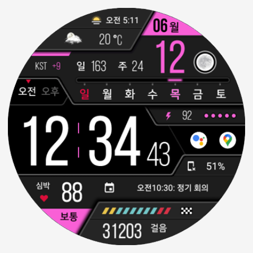 나인워치에서 제작한 한국어 전용 9INE 004k 디지털 워치페이스 입니다.