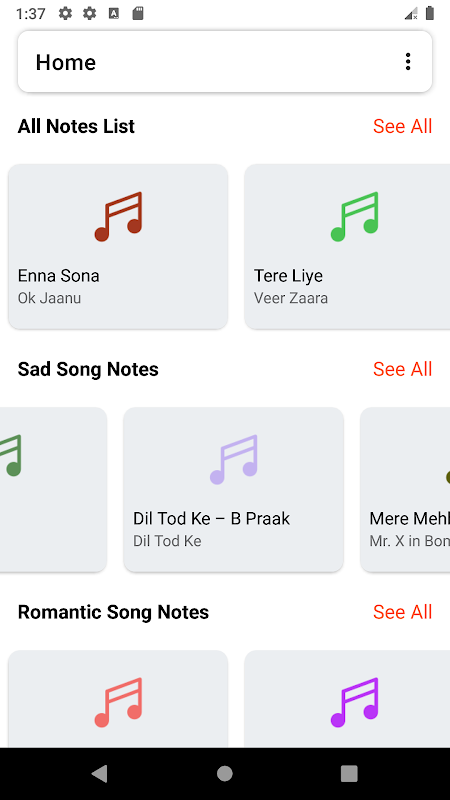 Here we are glad to introduce the one of the its kind app. The app with most of the Bollywood Hindi songs piano notes.