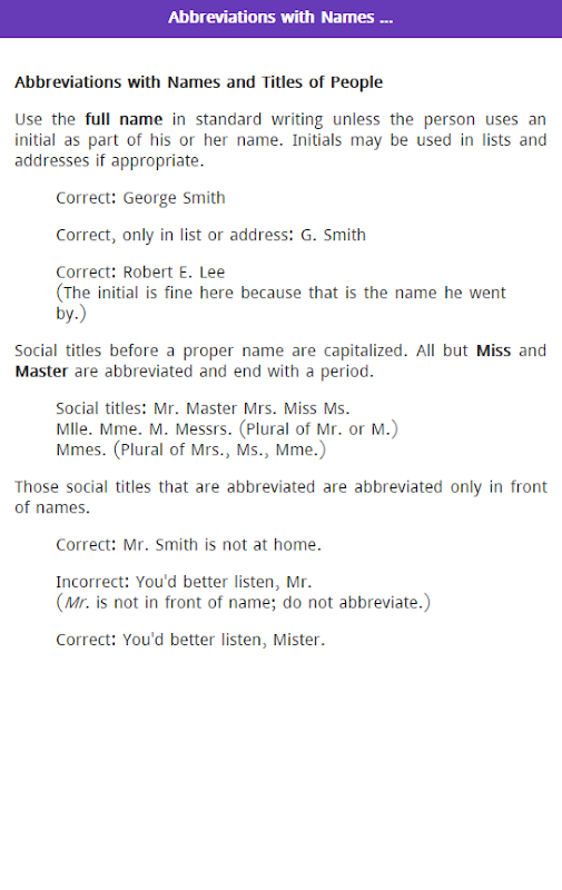 Singkatan adalah bentuk singkat kata atau frasa. Singkatan dapat digunakan untuk menghemat ruang dan waktu. Mengetahui singkatan akan membantu Anda dalam setiap langkah hidup Anda seperti Ujian, Wawancara dll. Dari aplikasi ini, Anda akan dapat mempelajari aturan singkatan, daftar singkatan yang umum digunakan dll.