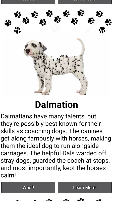Koleksi mini anjing keturunan dengan fakta-fakta serta klip suara. Ditujukan untuk anak-anak, berinteraksi dan belajar lebih banyak tentang teman-teman berbulu kita dengan aplikasi sederhana ini.