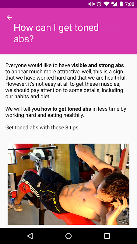Latihan perut rata-rata Eksklusif di aplikasi ini. Dengan teks, foto dan penjelasan rinci. Cara terbaik untuk melakukan latihan perut di rumah termasuk sesi.