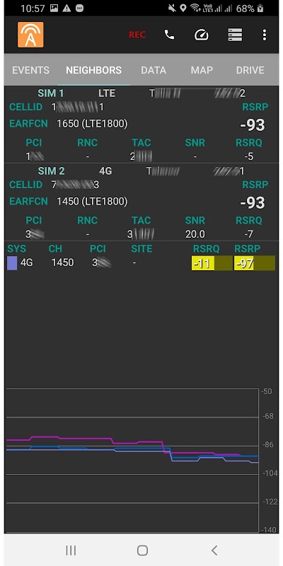 Jika ponsel spesifik Anda tidak melaporkan nilai RX, coba pengaturan "Gunakan metode lama untuk Melayani Sel"! Perlu diketahui juga bahwa tidak semua ponsel mendukung tetangga.