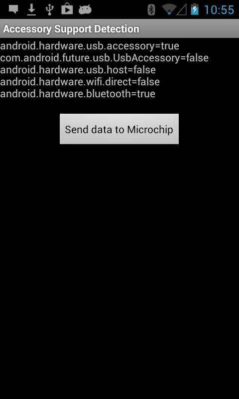 This app is used to detect various libraries on a phone/tablet that can be used to connect to an accessory. Information about the phone/tablet is gathers and optionally sent to Microchip to help improve our information about supported devices for various configurations.