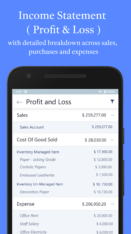 MANAJEMEN INVENTARIS: Jika Anda membeli / menjual produk fisik, Anda dapat mengaktifkan pelacakan inventaris untuk mereka. Tingkat inventaris Anda untuk setiap produk akan secara otomatis dikurangi pada Penjualan dan ditingkatkan pada Pembelian. Modul Untung dan Rugi akan melacak "Harga Pokok Penjualan" setiap kali Anda melakukan Penjualan dan menghitung keuntungan Anda sesuai dengan itu.
