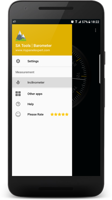 * Catatan: Aplikasi ini membutuhkan perangkat dengan sensor tekanan, dan juga sensor accelerometer dan giroskop untuk inclinometer dan kompas.