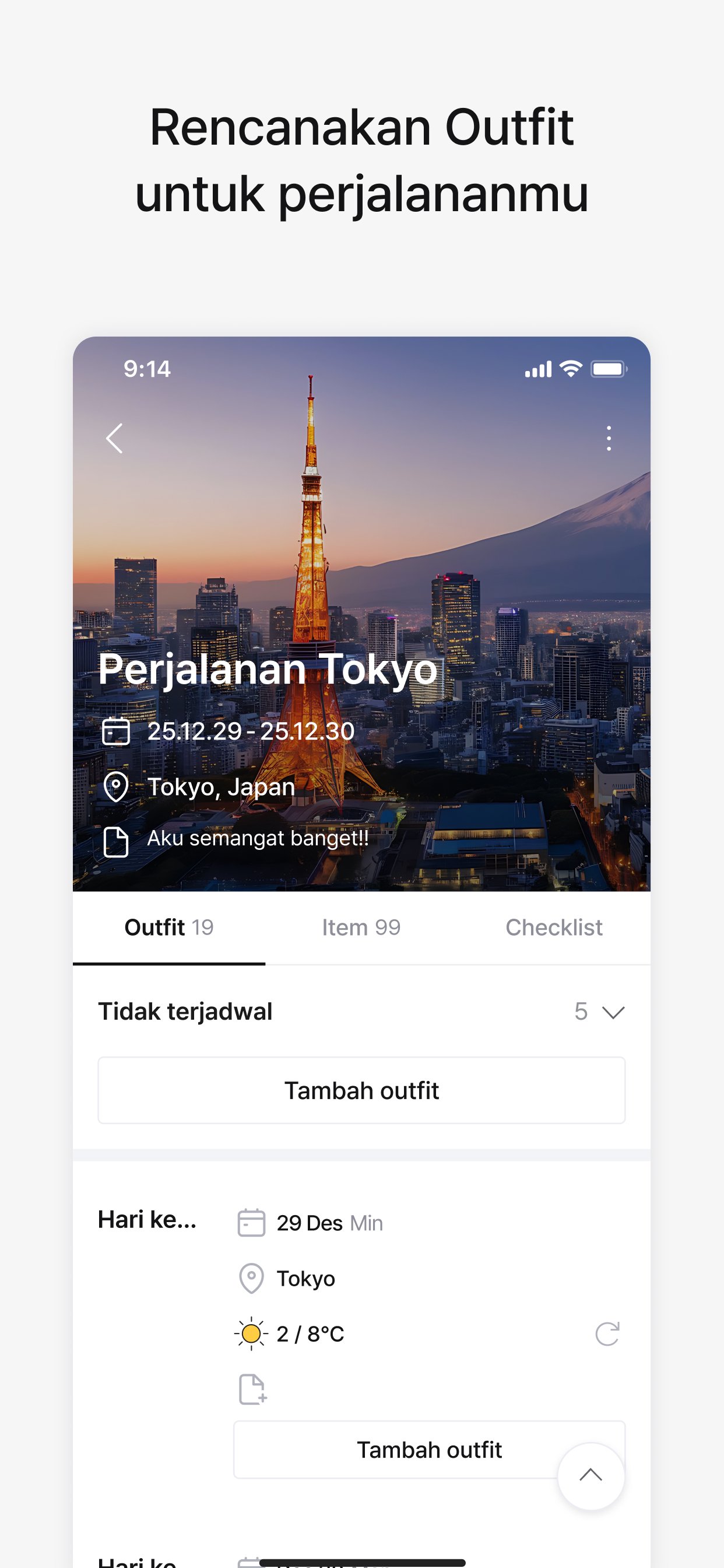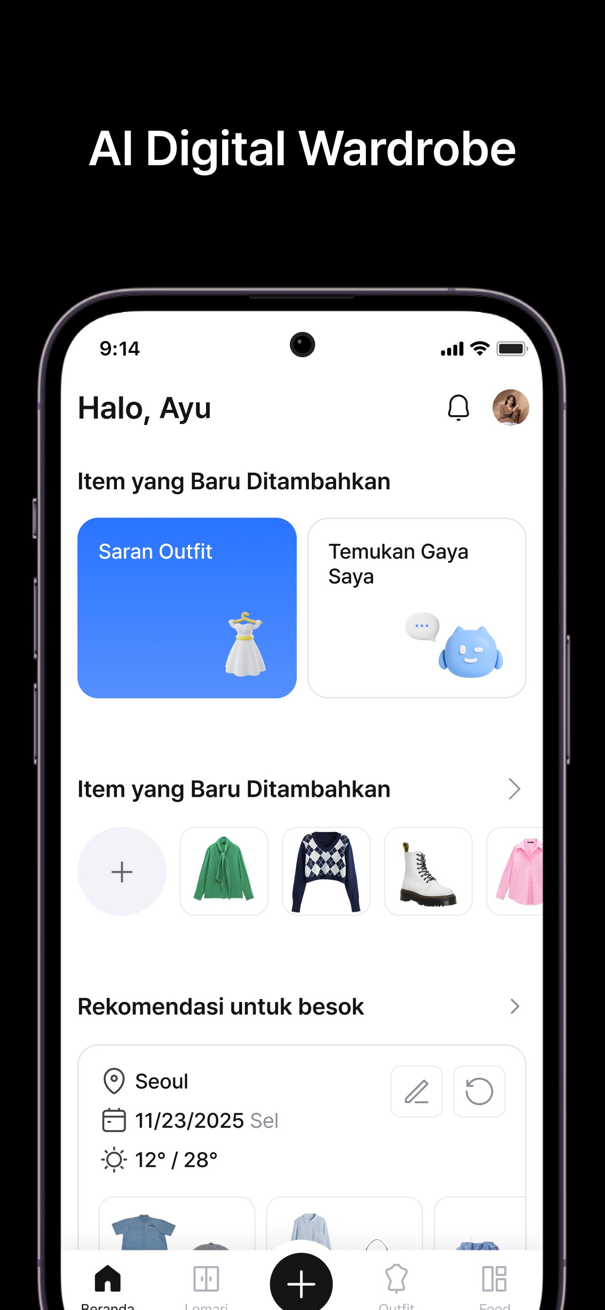 - Terima saran pakaian harian yang disesuaikan dengan cuaca dan jadwal Anda.