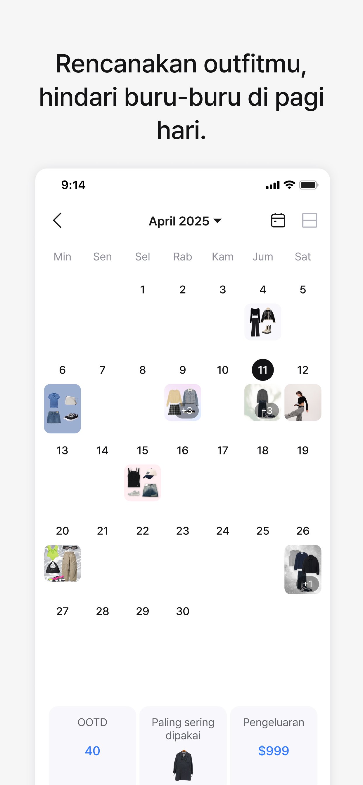 - Lacak apa yang Anda kenakan untuk melihat item yang paling Anda sukai, biaya per pemakaian, dan munculnya gaya pribadi Anda yang sesungguhnya.