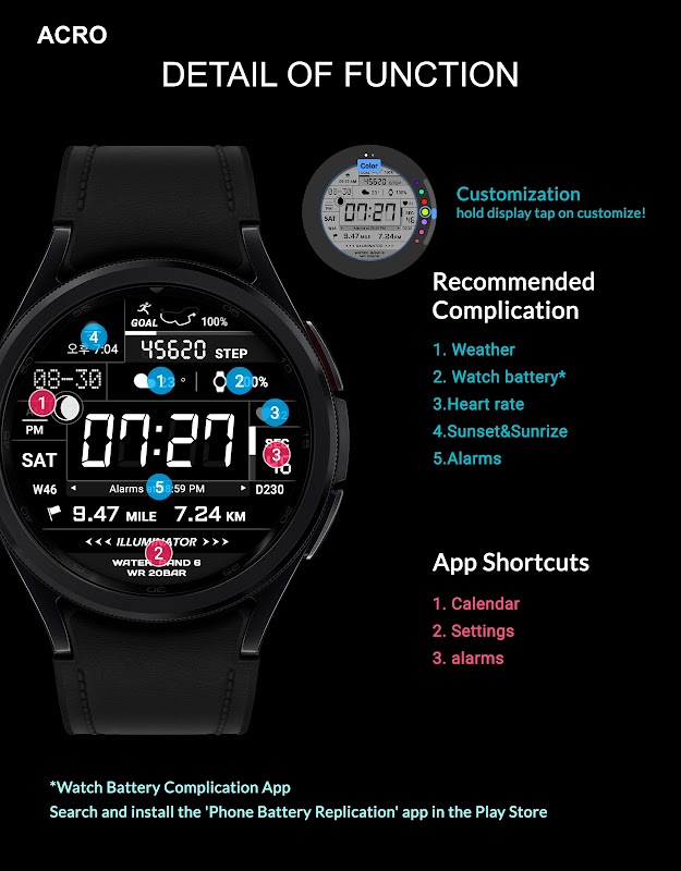Setelah menginstal aplikasi tambahan dari tautan di bawah ke jam tangan dan ponsel cerdas Anda, atur kerumitannya.
