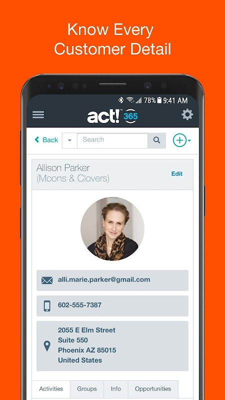 With the Act! 365 mobile app, you can: