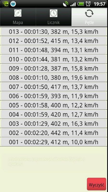 LAP terjadi ketika Anda kembali ke tempat yang sudah dikunjungi di sesi ini atau mendekati tempat ini. Pada pengaturan layar Anda dapat memilih keakuratan deteksi lap.