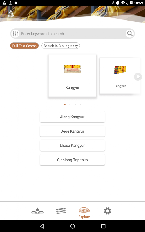 1. ADARSHAH adalah aplikasi yang memungkinkan Anda membaca dan melakukan pencarian dokumen kuno dalam format digital. Ada tiga kategori utama teks: (a) Kangyur (kata-kata Buddha yang diterjemahkan ke dalam bahasa Tibet); (b) Tengyur (komentar para sarjana India yang diterjemahkan ke dalam bahasa Tibet); dan (c) teks Buddha Tibet.