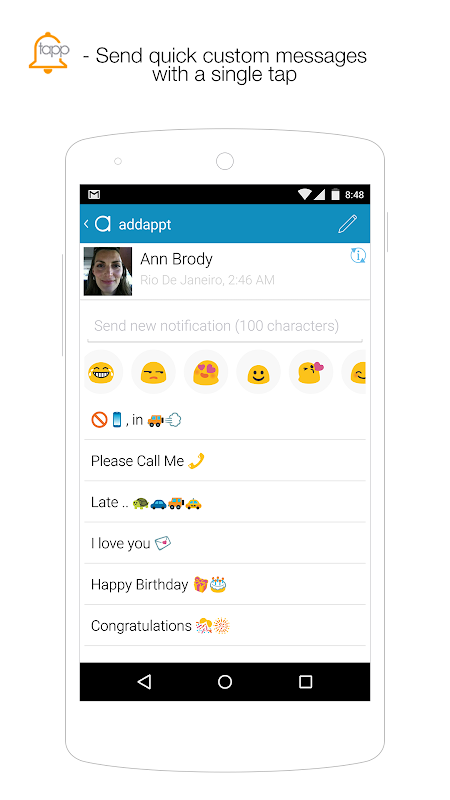 More recently updated with 'tapp' - send short and quick notifications and/or emoji as messages with a single tap.