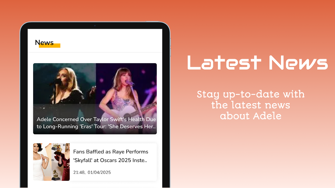 Jelajahi daftar lengkap album dan lagu Adele. Aplikasi kami mencakup semua lagu hits, dari rilisan awal hingga pemuncak tangga lagu terbaru. Nikmati album seperti: