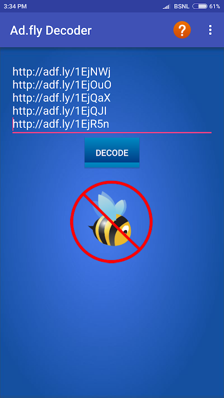 Tap on any adf.ly URL anywhere in your phone and then select adfly decoder as shown in screenshots, then URL will be decoded and you will be redirected to the decoded URL. After installing, you can test the app by clicking any test URL.