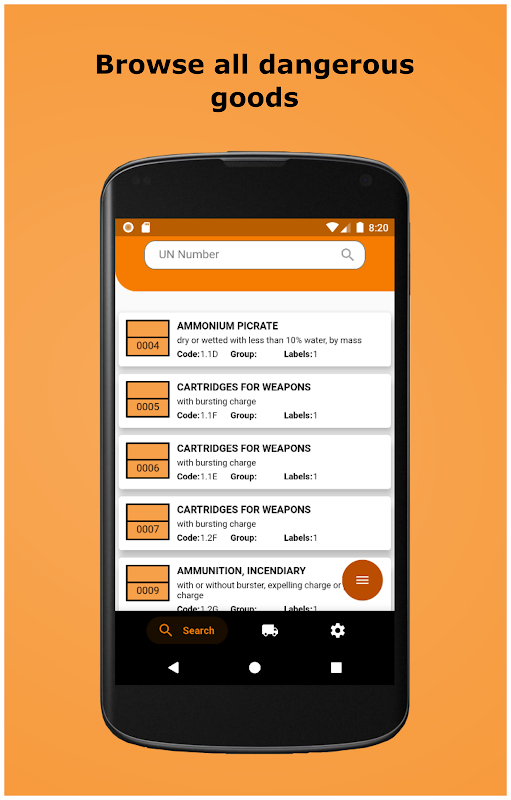 * Cari barang berbahaya dengan nomor PBB, nama, atau deskripsi.