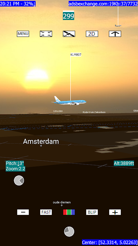 3D dengan VR - menggunakan perangkat Android yang memiliki sensor yang benar (yaitu gyro, gravitasi, dan kompas) Anda akan dapat menggerakkan ponsel Anda dalam lingkaran 360 derajat penuh di dunia nyata dan melihat posisi pesawat di sekitar Anda.