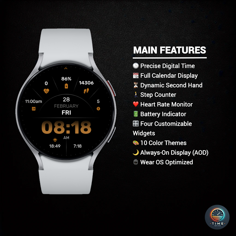 Tingkatkan pengalaman smartwatch Anda dengan Advanced Time Watch Face – desain modern dengan fungsi yang kuat!
