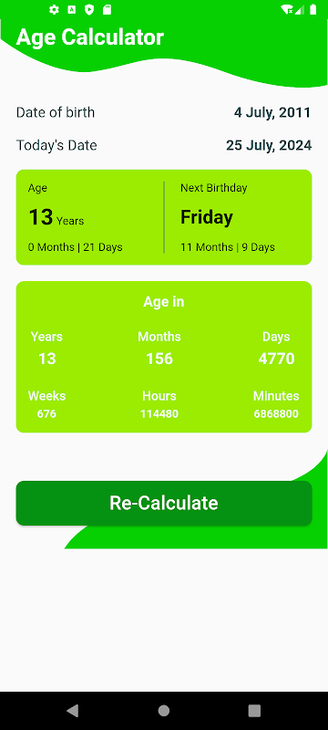 Cari tahu usia dan hari persis Anda hingga ulang tahun berikutnya dengan aplikasi kami!