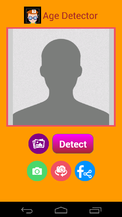 HOW TO PLAY : CAMERA MODE 1. Press ‘Camera’ Image Button to open camera 2. Take a photo of your face or your friend faces 3. Press ‘Detect’ button. 4. Share the result with your friends to have fun!