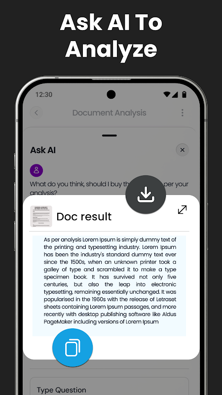 Pindai dokumen dengan mudah menggunakan kamera Anda atau unggah berkas dari galeri Anda. Setelah analisis atau penandatanganan, ekspor dokumen tersebut sebagai PDF bertanda tangan aman yang siap dibagikan atau dikirimkan.