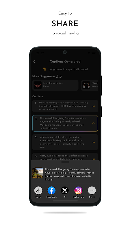 Berhentilah menghabiskan waktu berjam-jam untuk bertukar pikiran tentang teks! AI Caption - Keterangan Gambar membantu Anda membuat teks yang sempurna untuk setiap momen. Unduh sekarang dan buat postingan Anda tak terlupakan!