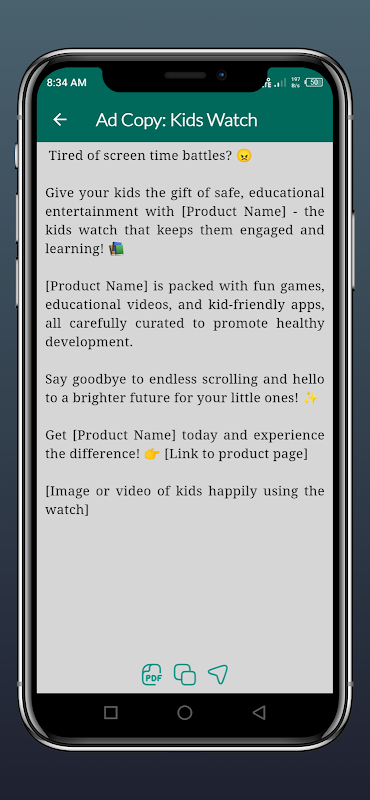 📄 Simpan dan Bagikan dengan Mudah: Salin teks yang dihasilkan, unduh seluruh respons sebagai PDF, atau bagikan dengan lancar melalui email – berkolaborasi dan mendistribusikan konten pemasaran Anda tidak pernah semudah ini! 📎