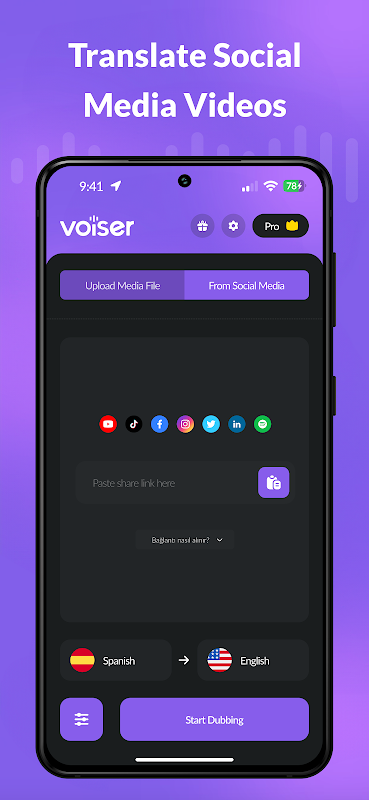 Penerjemah & Dubbing Video AI adalah aplikasi terbaik untuk menerjemahkan, men-dub, dan menambahkan teks atau subtitel ke berkas video atau audio apa pun. Ubah video atau audio Anda secara instan ke dalam 40+ bahasa menggunakan AI dubbing yang canggih. Impor video atau audio (MP4, MP3, WAV) dari ponsel Anda—atau bagikan langsung dari YouTube, TikTok, Instagram, Twitter, Facebook, Spotify, dan lainnya. Buat konten global dengan teks otomatis, terjemahan akurat, dan sulih suara profesional dalam bahasa apa pun.