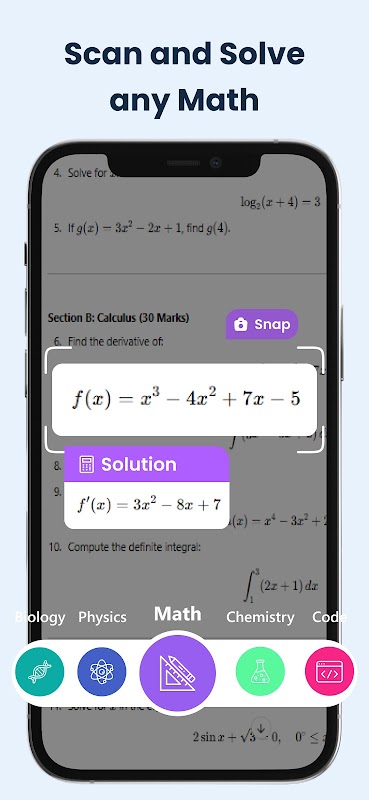 Mari selami inti aplikasi kami – pemecah matematika tingkat lanjut. Mengatasi masalah matematika yang rumit tidak pernah semudah ini. Dengan beberapa ketukan, Anda dapat mengakses solusi langkah demi langkah yang tidak hanya memberi Anda jawaban yang benar namun juga memandu Anda melalui proses untuk mencapainya. Pemecah masalah matematika kami dirancang untuk meningkatkan pemahaman Anda tentang konsep matematika, membuat Anda lebih percaya diri di kelas.