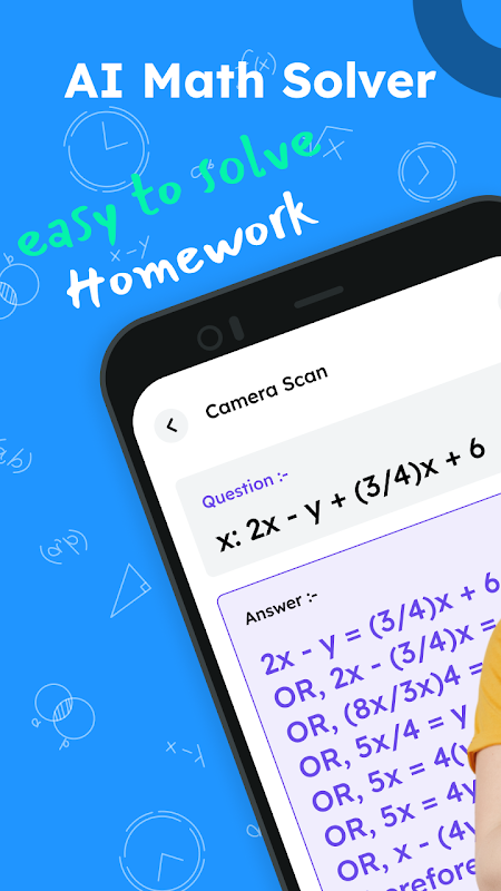 AI Math Solver: Easy AI Math menggunakan algoritme canggih dan teknik pembelajaran mesin untuk menganalisis semua soal dengan mudah. Pindai dan temukan jawaban untuk soal matematika yang rumit dengan mudah menggunakan AI Math Solver: Easy AI Math App ini. Salah satu kalkulator AI pintar untuk memecahkan soal matematika dasar dan rumit. Dengan AI Math Solver: Easy AI Math App ini, Anda dapat menyimpan semua riwayat soal yang telah dipecahkan sebelumnya. Dapatkan petunjuk dari aplikasi ini tentang cara menggunakan AI Math Solver.