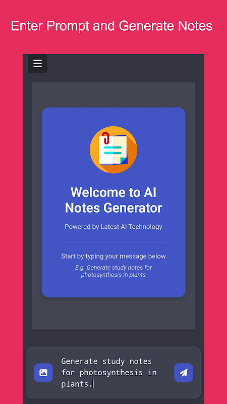 Memperkenalkan AI Notes Generator, alat utama Anda untuk membuat catatan yang jelas, ringkas, dan komprehensif hanya dalam hitungan detik. Dirancang untuk siswa, pendidik, profesional, dan siapa saja yang membutuhkan catatan terstruktur dengan baik, aplikasi ini merevolusi cara Anda mengatur dan menangkap informasi.