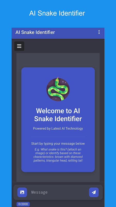 AI Snake Identifier adalah alat canggih dan cerdas yang membantu Anda mengidentifikasi ular apa pun dalam hitungan detik. Baik Anda seorang pencinta alam, pendaki, ahli biologi, atau sekadar ingin tahu, aplikasi ini menyediakan cara cepat dan akurat untuk mengenali ular menggunakan teknologi AI terkini.