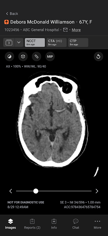 Aplikasi komunikasi seluler Aidoc menyederhanakan komunikasi untuk mempercepat pengambilan keputusan yang sensitif terhadap waktu dan meningkatkan kualitas perawatan. Aplikasi ini memberikan prioritas dan pemberitahuan berbasis AI tentang berbagai patologi akut termasuk oklusi pembuluh darah besar dan emboli paru.