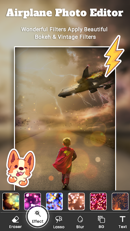 Mari kita mulai dengan aplikasi baru Editor & Efek Foto Pesawat yang indah ini tanpa risiko apa pun dan tanpa biaya apa pun. Buat foto Anda dengan Pesawat penuh gaya dan lebih banyak Pesawat tersedia di aplikasi editor foto ini.