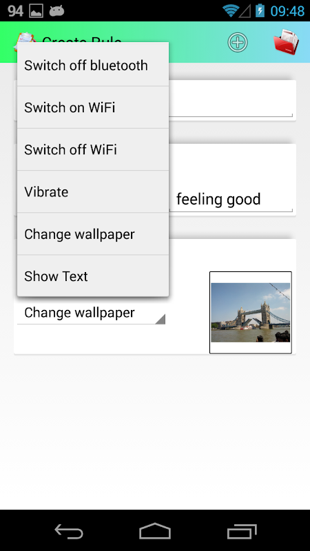 We will add more sensors and actions in the future. If you want to suggest scenarios of usage, giving us ideas for extensions, send us an email or visit our forum (http://www.tecvis.co.uk)!