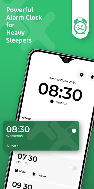 Anda harus menyelesaikan soal matematika sebelum alarm berbunyi. Pilih jawaban yang tepat dari menu tarik-turun. Pilih tingkat kesulitan dan jumlah persamaan yang Anda butuhkan. Aplikasi ini sempurna bagi mereka yang ingin otak mereka segera terbangun saat membuka mata. Jika Anda menyukai aplikasi yang memungkinkan Anda menyelesaikan soal matematika untuk menghentikan alarm, aplikasi ini cocok untuk Anda.