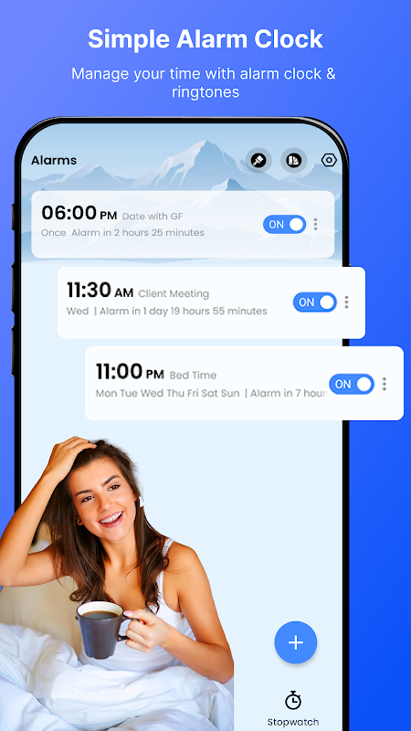 Alarm Clock: Bangun & Tidur adalah solusi lengkap untuk mengatur waktu, tidur, dan jadwal harian Anda. Dengan fitur-fitur canggih seperti Alarm, Jam Dunia, Timer, dan Stopwatch, dipadukan dengan tema-tema memukau dan koleksi suara yang kaya emosi, aplikasi ini akan mengubah rutinitas pagi Anda dan meningkatkan produktivitas harian Anda.