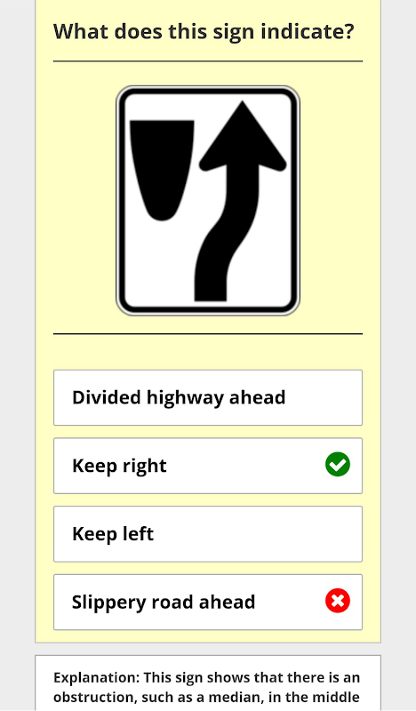 This app have lots features select test, answer text and image questions with explanation provided with all the questions. see results in percentage and numbers.
