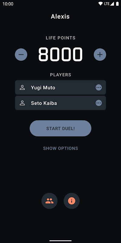 • Select player names and decks - input via a text field or choose saved players for a quick duel start